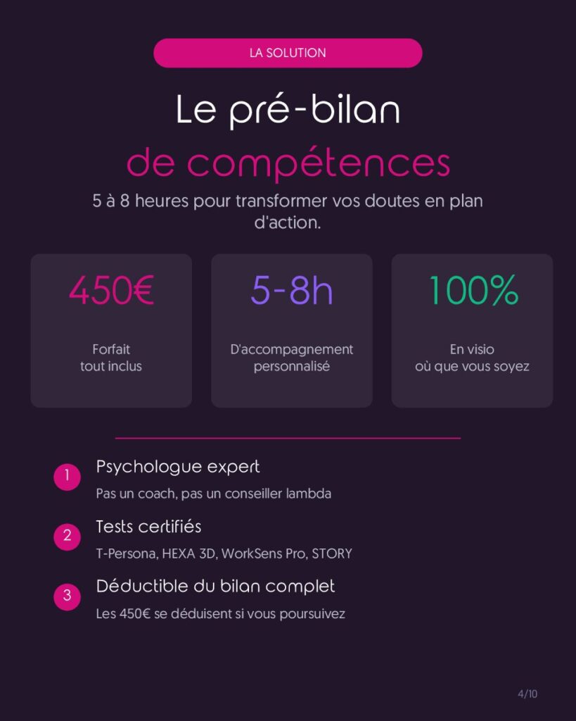 Et si tu veux aller plus loin avec un bilan complet, les 450 € sont intégralement déduits.