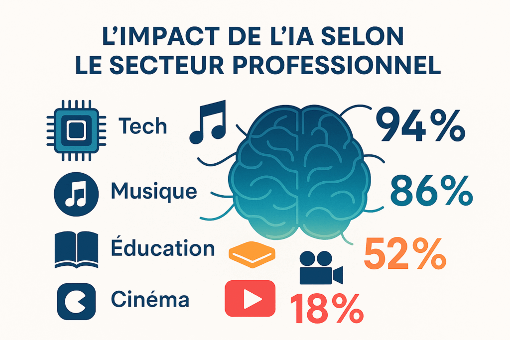 Selon plusieurs études récentes, les métiers de la création de contenu sont particulièrement exposés. Les rédacteurs techniques, les traducteurs, les graphistes, les compositeurs de musique commerciale voient leurs perspectives professionnelles s’assombrir. Certains analystes estiment que 30 à 40% des emplois créatifs pourraient être automatisés d’ici 2030.